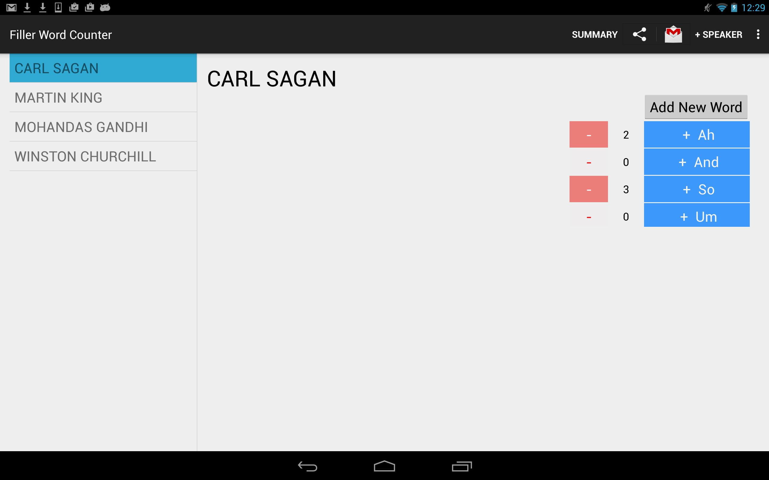 This app greatly simplifies the role of Ah Counter in public speaking meetings such as Toastmaster International. The highly intuitive interface to keep track of different speakers and their filler word usage. The ability to add new filler words, such as er, but, and repetitions specific to that speaker makes this app a great way to track individual speakers progress. The report is easy to read and easy to share with other members at the end of the meeting.